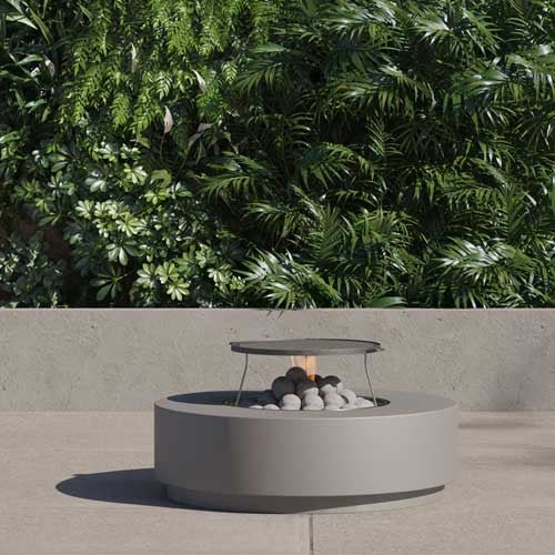 Versatile. A multifunctional fire table that can be used as a table, cooking device, or flat surface with the cover on.
