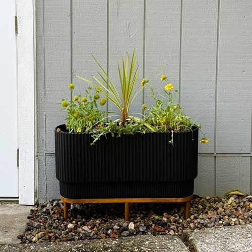 Minimal and modern. The planter can be used as an accent piece for an outdoor deck or can provide interest to a rooftop patio.  These planters are made of heavy-duty concrete-plastic composite, designed to withstand fading.